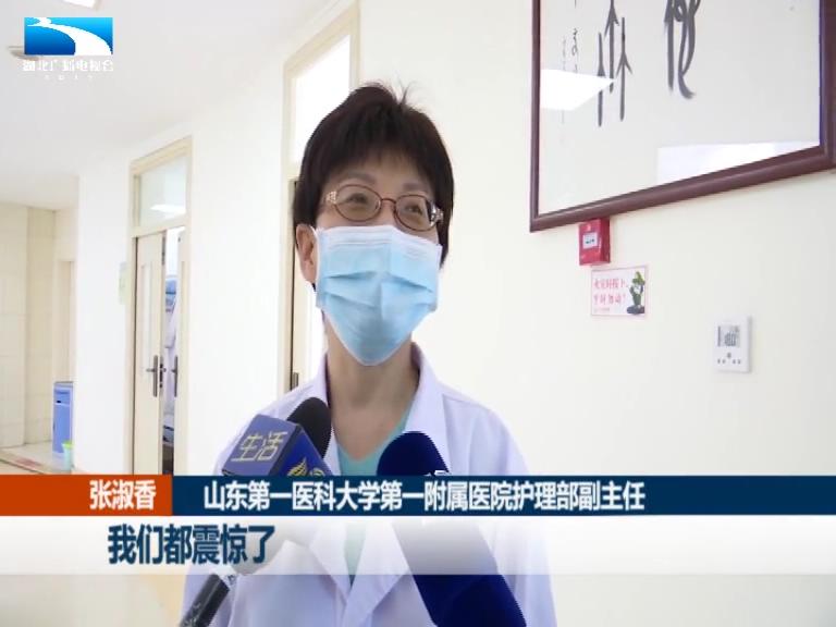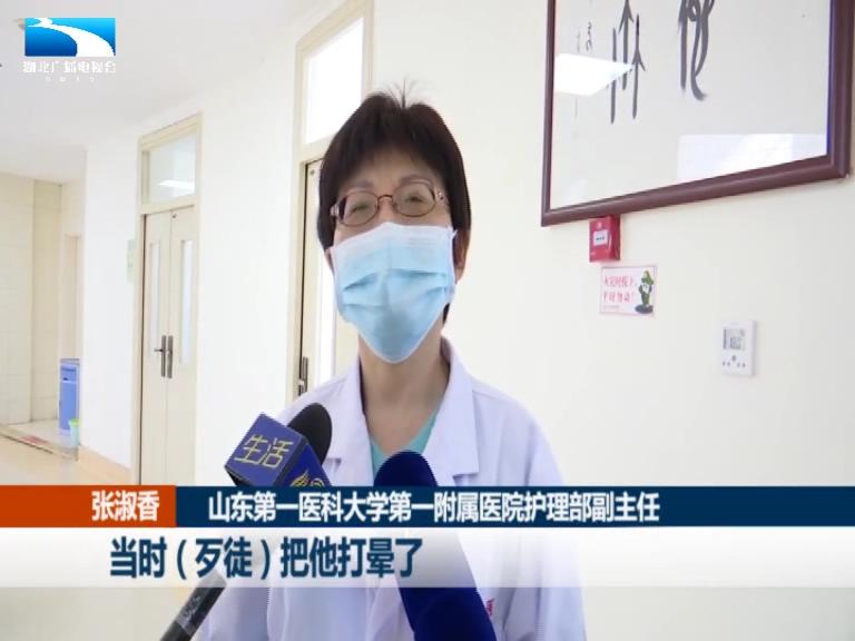 山东第一医科大学第一附属医院护理部副主任 张淑香:当时歹徒把他打晕了,头也扎了一刀,两个人厮打的时候刀可能就断了。