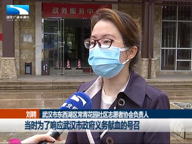 武汉市常青花园社区志愿者协会负责人 刘聘:当时为了响应武汉市义务献血的号召,斯文夫妇在他们小区发起义务献血的活动,同时也和我对接希望看能不能,在整个常青花园志愿者队伍发动一下。我是通过微信小程序接龙的方式发起的,不到八个小时的时间,就有93个人报名,最后报名人数破百了。