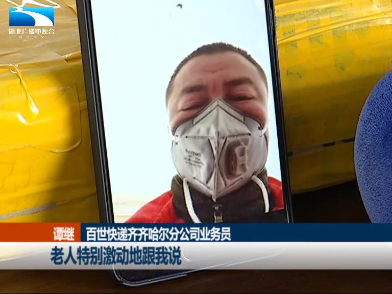 百世快递齐齐哈尔分公司业务员 谭继:老人特别激动地跟我说,希望把这个邮件寄到咱们湖北,老人两眼也是饱含热泪。