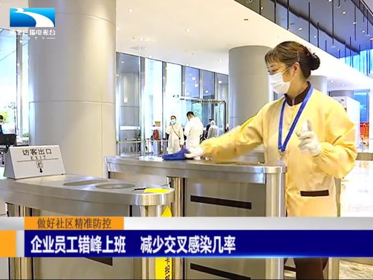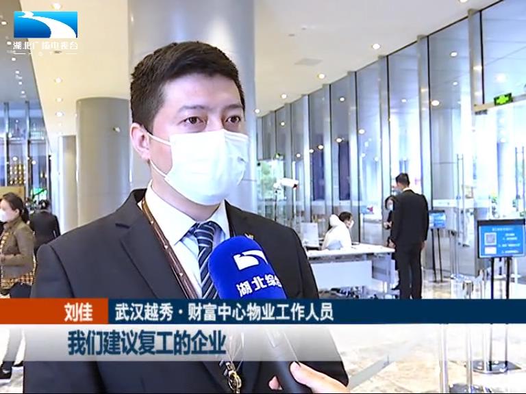 武汉越秀·财富中心物业工作人员 刘佳:我们建议复工的企业采取2种上班方式,第一种是错峰上下班,第二种是实行AB班制,就是将员工分成2组,一三五或者二四六分开上班,减少感染的几率。