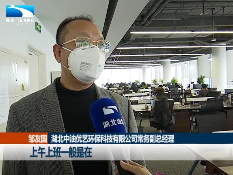湖北中油优艺环保科技有限公司常务副总经理 邹友国:上午上班一般是在八点半到九点半之间,下午下班基本上在五点半到六点半之间,避免人流的聚集。另外我们办公室内员工办公,基本上保持2米以上安全距离,确保人员之间互相不受影响。