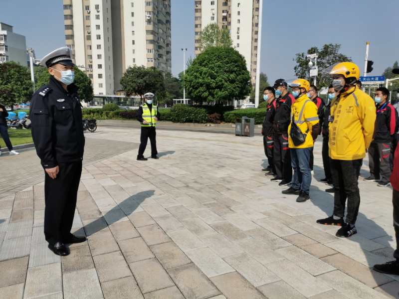 目前,武汉各行各业复工复产正如火如荼的进行着,为助力企业复工复产,预防和减少涉及骑手的交通事故发生,4月26日,光谷交警组织辖区美团、饿了么、京东、顺丰等大型外卖企业负责人和“骑手”代表开展交通安全宣传教育活动,面对面宣讲交通安全知识,提高骑手小哥们的交通法律意识和安全防护意识。