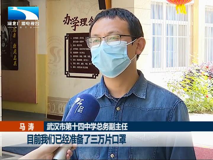 武汉市第十四中学总务副主任 马涛:目前我们已经准备了三万片口罩,84消毒液900公斤,75%的酒精1200瓶,洗手液800瓶,免洗洗手液400瓶。
