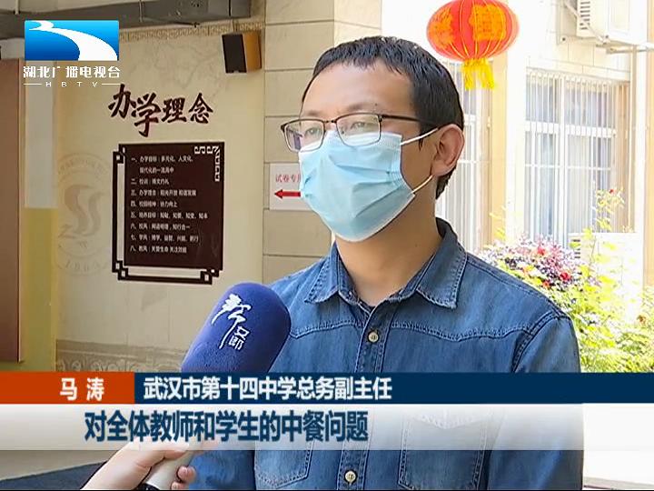 武汉市第十四中学 总务副主任 马涛:对全体教师和学生的中餐问题,我们是采取了聘请中央厨房统一配送。领取餐盒之后回到自己的座位上用餐,由老师统一进行管理。