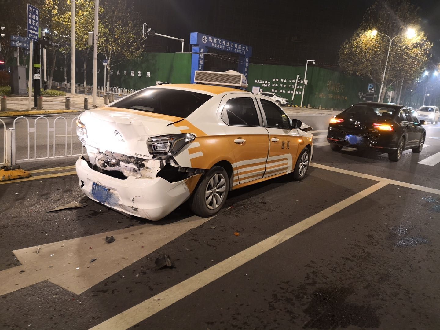 经了解,56岁的方某为湖北某环境技术有限公司员工。事发当晚7时许,方某和班组同事们在单位附近餐馆一起吃年饭,原本以为当天不用值班,席间便喝了几杯白酒。可聚餐还未结束,就接到了上级通知需要值班。于是,班组长罗某还是安排他出车巡路。事发时,方某驾驶环卫作业车沿黄鹤路行驶,行至高铁西二路路口时,看到前方车辆排队等候信号灯,本该踩刹车停车,由于酒精作用,意识不够清醒,结果却误踩了油门踏板,导致车辆撞上了前方一辆出租车,继而出租车又撞上了前方的一辆黑色小轿车。