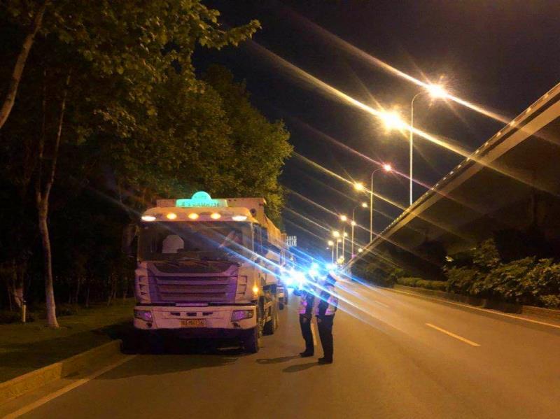 网友举报渣土车夜闯红灯,武汉交警迅速查实并处罚