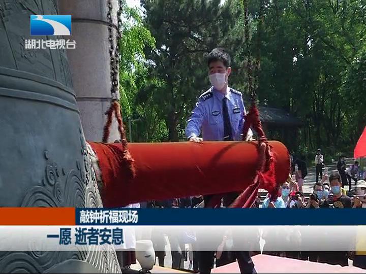 敲钟祈福现场:一愿,逝者安息;二愿,生者康健;三愿,疫情早散。