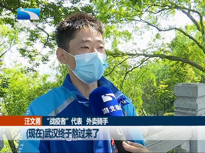 “战疫者”代表 外卖骑手 汪文勇:通过我的职业便利,给社区送团购、送物资。刚开始的时候,感觉大街上一个人都没有,就是特别心酸,现在武汉终于熬过来了。