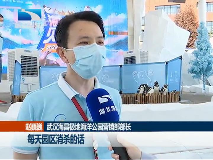 武汉海昌极地海洋公园营销部 部长 赵巍巍:每天园区消杀的话,是每隔两小时进行一次,覆盖的话是园区的主要干线,以及前场、后场的相关区域。为了保证我们游客的入园安全,所以我们实行了人流管控,是按照原有日承载量的30%,也就是17000人来进行入园人流的管控。