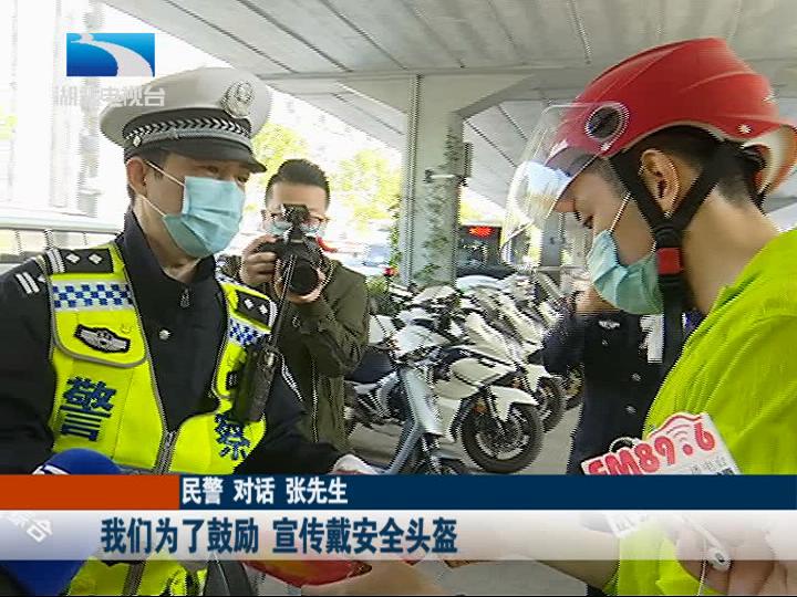 武汉市公安局江岸区交通大队副大队长 徐界平:戴了安全头盔的电动车驾驶人员,他遵守了交通法规,我们将奖他一份小龙虾。如果没有佩戴安全头盔,我们将会把他拦下,进行电视短片的观看学习,接受警示教育。然后要他参加问卷答题学习,我们会送给他一个头盔,提醒他注意交通安全。