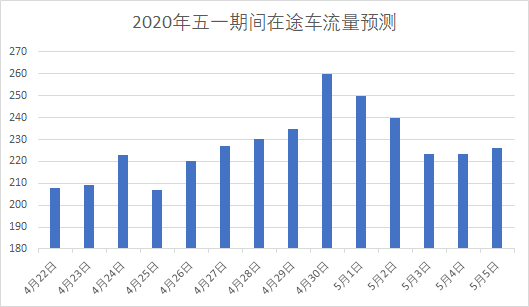 5月1日为五天长假的第一天,天气为阵雨转多云,预计当天出行以省内中短途返乡、旅游的自驾车为主,进出城通道、旅游景区周边、商圈周边道路将出现明显的交通拥堵,全市其它道路交通运行平稳。武汉交警提醒:请提前规划出行线路,错峰出行,合理避堵。