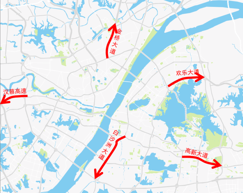 (3)经白沙洲大道、青郑高速武昌收费站出城车辆,可通过江城大道、汉洪高速、四环线绕行武深高速。