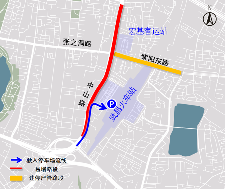 火车站及周边道路:预计5月1日三大火车站的交通压力呈现上升态势,其中以武昌火车站周边中山路、武珞路和汉口火车站周边竹叶山立交、发展大道二环线(西向东)交通拥堵较为突出。