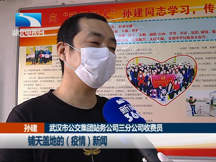 武汉市公交集团站务公司三分公司收费员 孙建:铺天盖地的疫情新闻,我就给社区打电话,我说你们这边需不需要志愿者。因为那个时候火神山正在建,那时候还没有方舱医院。我在那边主要给社区打电话排查,给他们分发口罩。刚开始家里人很不理解,她说你在家里,不能老老实实待着吗,都已经这个样子了,我说能出一把力就出一把力。