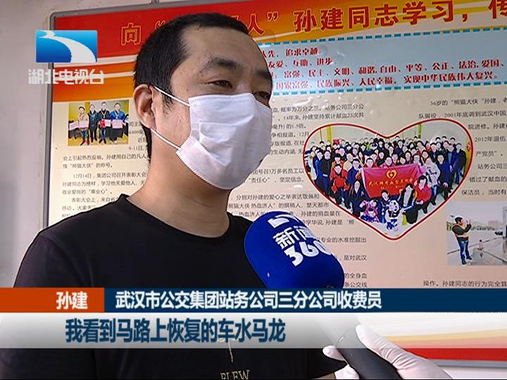 武汉市公交集团站务公司三分公司收费员 孙建:全国人民都没有忘记武汉,没有忘记武汉人民。我看到马路上恢复的车水马龙,以前的时候路上堵车心里很烦,现在说实话让我堵一个小时,我心里都乐意。对人对事多了一份沉淀,多了一份理解与包容。