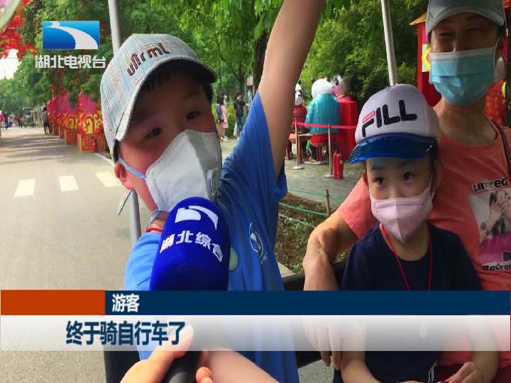 游客:好久没出来了,放个风、锻炼一下,骑个自行车。工作人员防护都做得很全面,非常的安心。