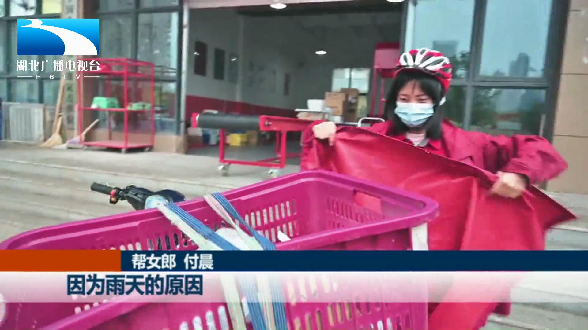 帮女郎 付晨:这会雨越下越大了,这是我们今天要送的第一批货。因为雨天的原因,要给它加盖这个雨披。待会儿不知道这个电动车,自己能不能搞定,希望我们今天能够顺利吧。