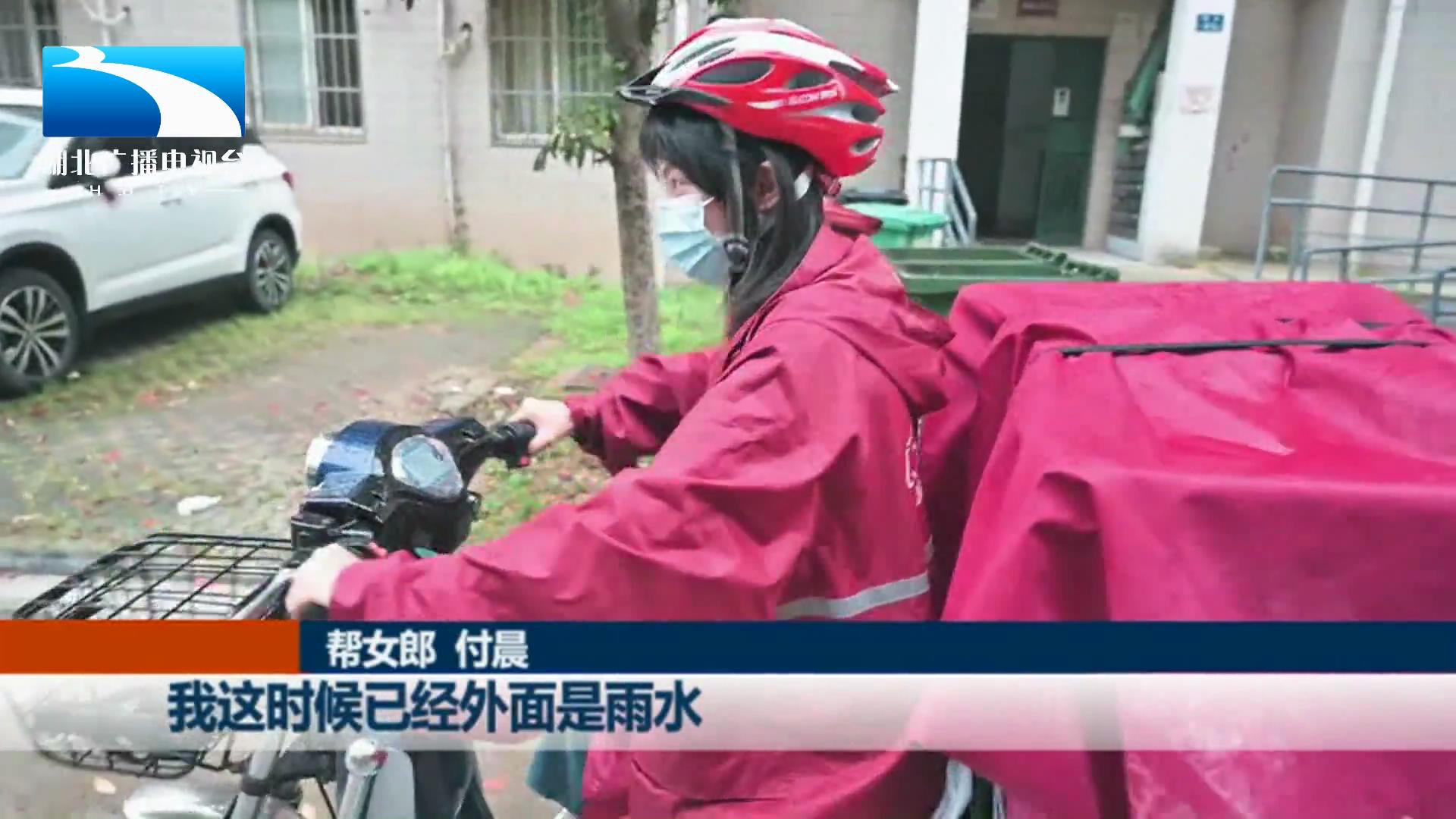 帮女郎 付晨:我这时候已经外面是雨水,里面是汗水。不知道怎么形容这种感觉,有点难受,希望快点能把今天的货送完吧。