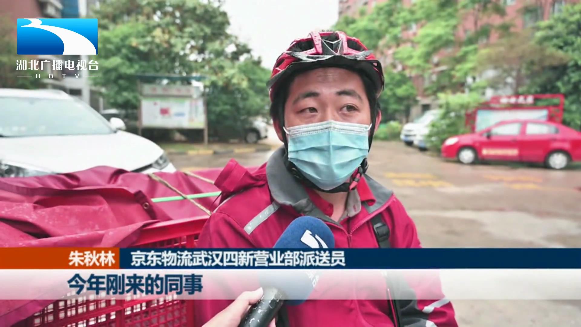 京东物流武汉四新营业部派送员 朱秋林:今年刚来的同事,他说这个做得比较累。我问他,我有多大。他说,你可能是83年的。我说不对,再说一遍。你不会是70后吧....做快递吧,太阳晒雨打,人可能比较显老。这也是没办法,既然选择了这行,就要坚持下去。