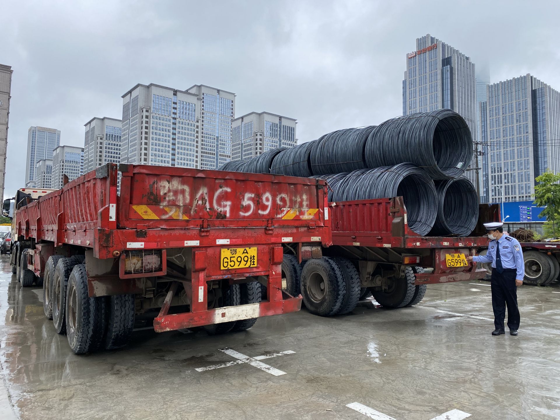 2020年4月29日上午,江汉区交通大队民警吴伟成、陈敏在对桥梁、隧道开展视频巡查时发现,有两辆满载钢筋行驶在辖区高架桥上的重型半挂牵引车十分可疑,一辆车头是红色,一辆车头是黄色,但挂车的号牌却都是鄂AG599挂,涉嫌“套牌”违法。