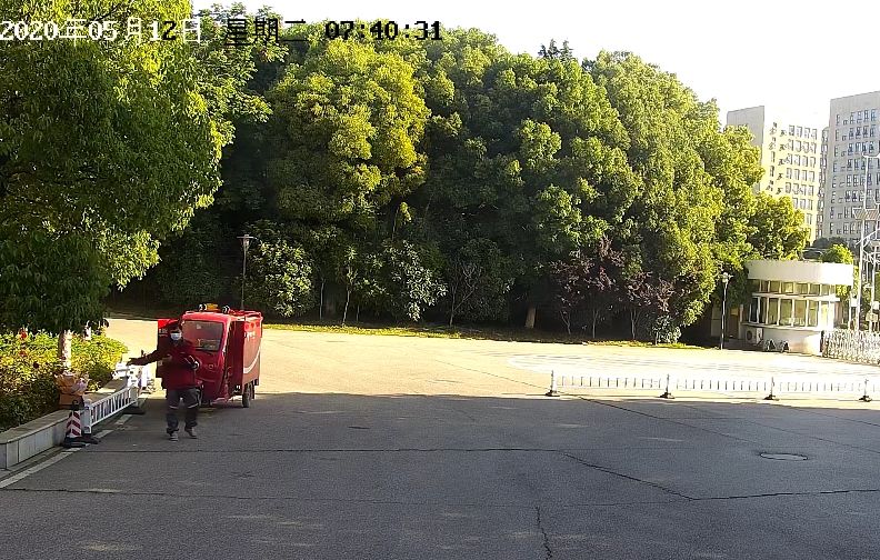 12日上午7点半,金银潭医院门口的监控摄像头拍下奇怪的一幕。