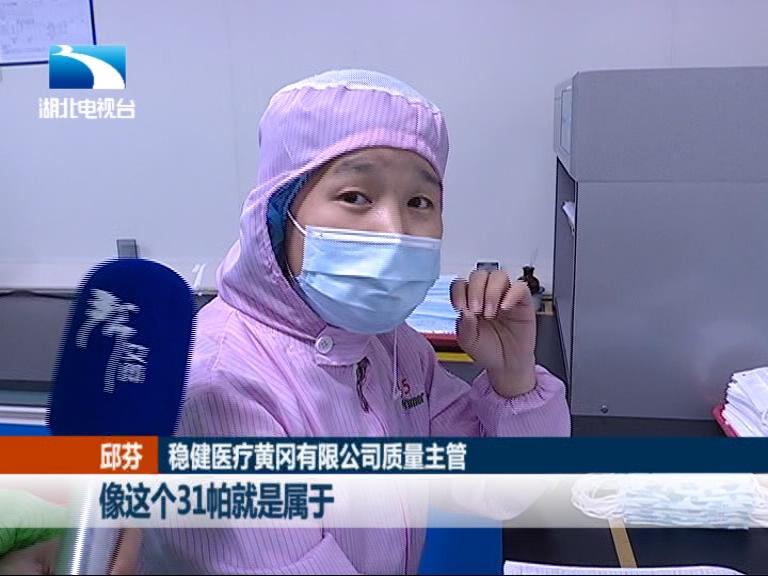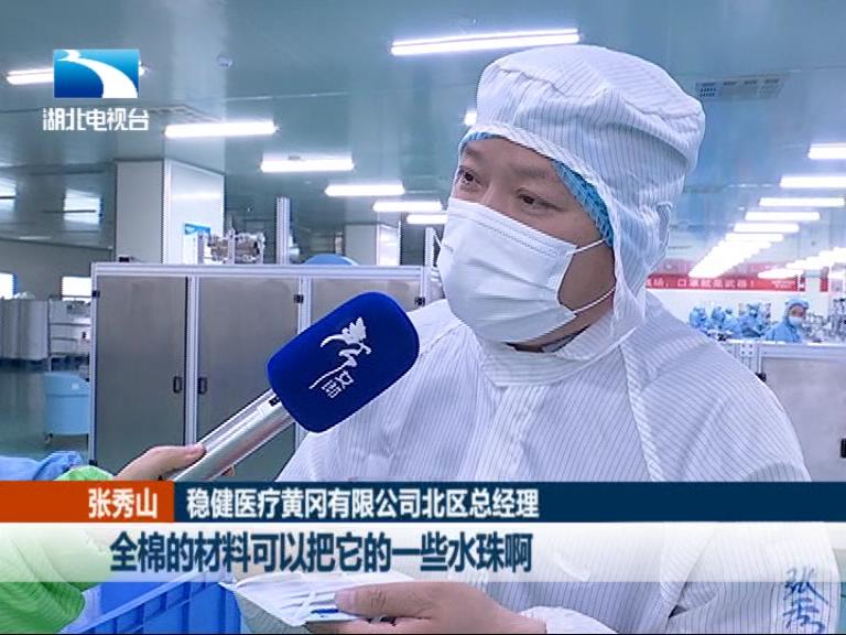 稳健医疗黄冈有限公司北区总经理 张秀山:里面的材料它是全棉水刺无纺布做的,它戴起来更舒服 而且更透气一些,而且有时候形成一些水珠。全棉的材料可以把它的一些水珠啊吸收掉,戴起来更舒服一些。