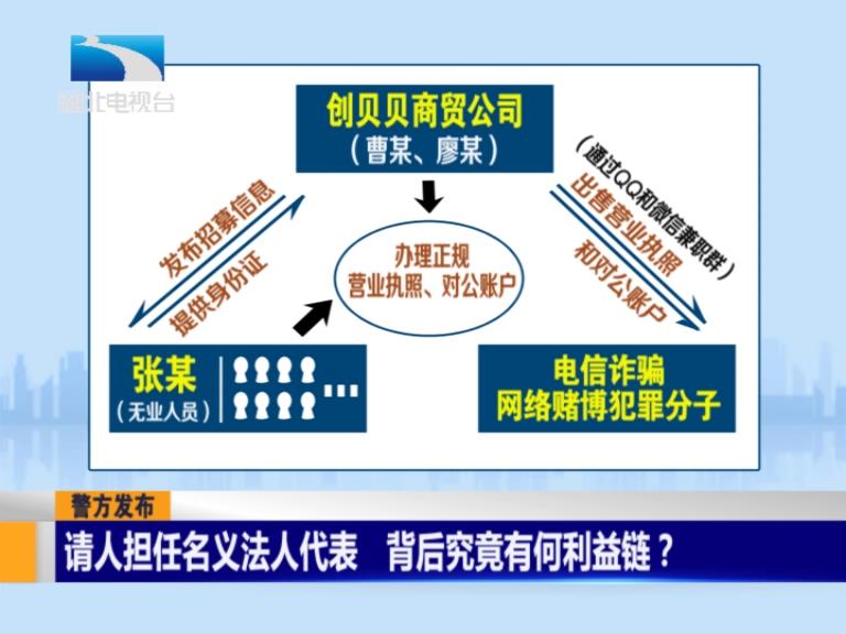 武汉市公安局蔡甸区分局大集街派出所副所长 赵统:创贝贝商贸公司有三个犯罪嫌疑人在里面,其中有两个是股东,一个是会计。他们两个股东抓捕时还是在网上招募卖卡身份证的人,还有办理营业执照的下家。会计在统计他们对外出售的,对公账户的数量。