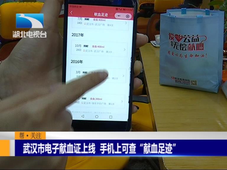 武汉市电子献血证上线 手机上可查“献血足迹”
