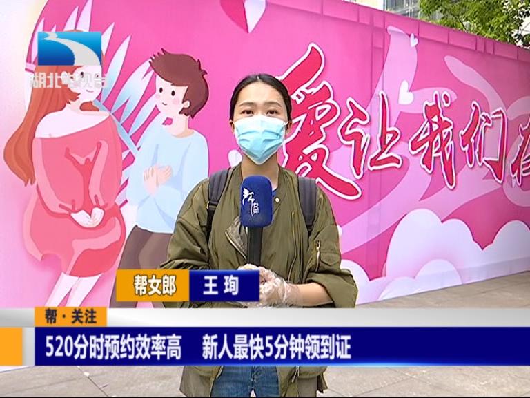 武汉市洪山区民政局婚姻登记处工作人员:办一对五六分钟吧,因为我们结婚证是提前打出来,当事人来了就是签字按完手印,打完钢印就可以拿走了。正常办公时间是9点,但是我们今天8点钟就过来了。我们跟新人讲的是按照时间段来,但是有的还是会提前来。