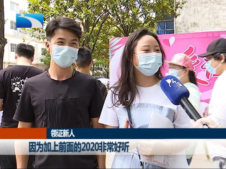 领证新人:因为加上前面的2020非常好听,我觉得特别好,所以就选今天过来领证。原来会以为排很长的队,没想到非常快的,几分钟就办好了。