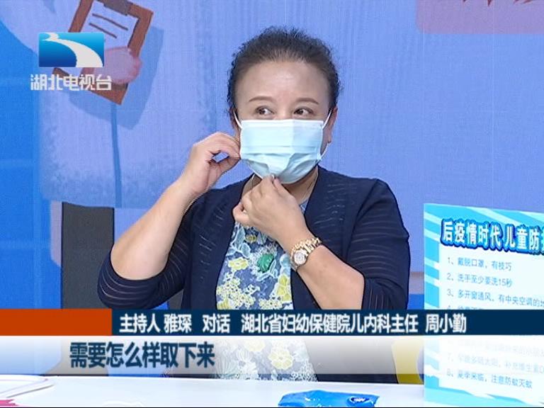 湖北省妇幼保健院儿内科主任 周小勤 :我们如果这个口罩还要用,需要怎么样取下来?这边取下来,用手捏着口罩的下端,然后把口罩合上,用纸巾把它包起来。