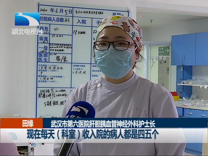 武汉市第六医院肝胆胰血管神经外科护士长 田缘:现在每天科室收入院的病人都是四五个,昨天做了五台手术,今天又有三台。