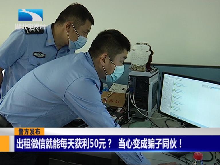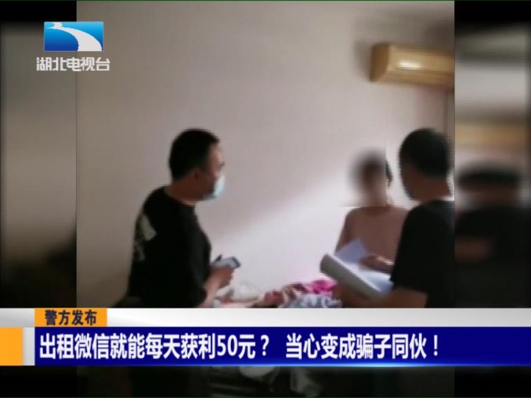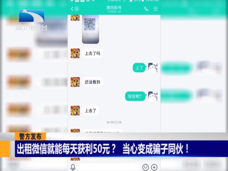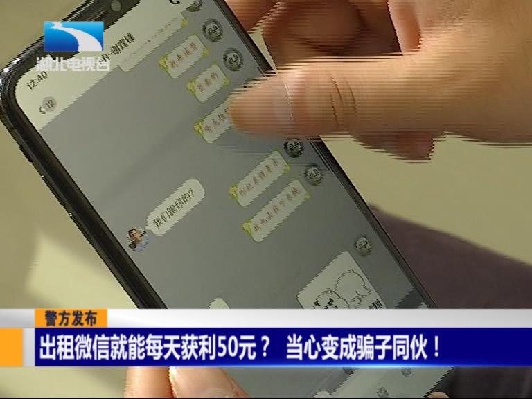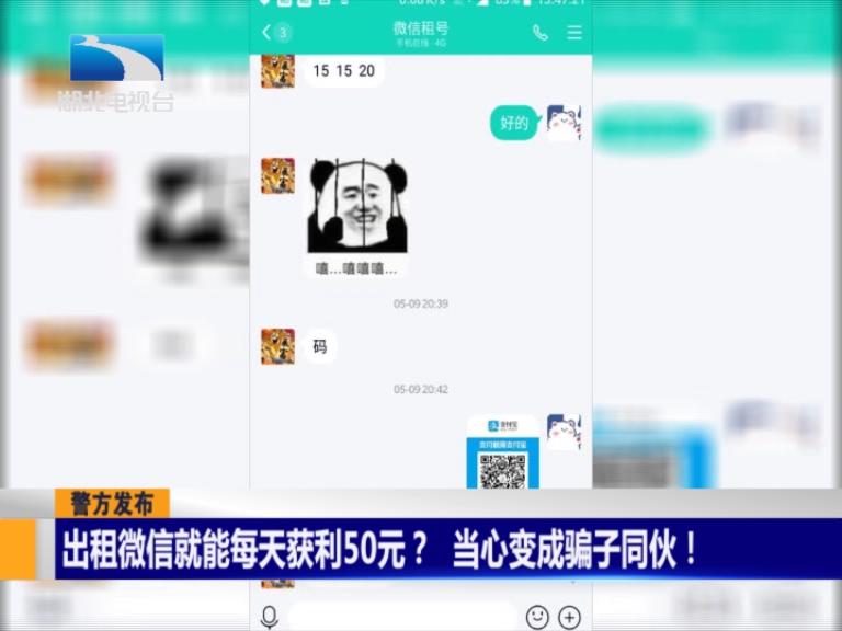 武汉市公安局青山区分局民警 张志鹏:她说找到兼职的发布者,对方声称只用把微信租给他,其他的什么都不用管,一天下来就给她50元的报酬。