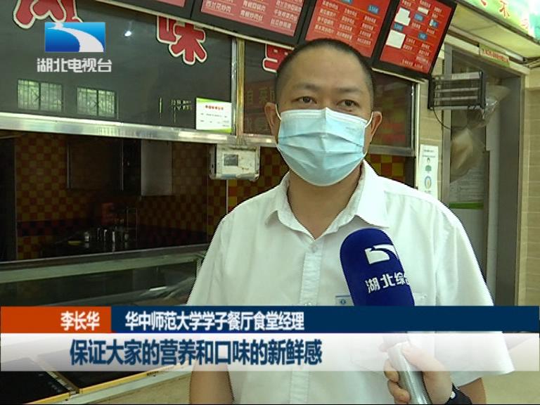 华中师范大学学子餐厅食堂经理 李长华:我们目前就开了一个窗口,大家可以看到我们地上有出入口路标。下一步,我们准备开两到三个窗口,根据学生的情况逐步增加。我们的菜肴每天都在更换,保证大家的营养和口味的新鲜感。