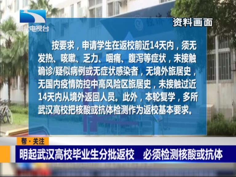 明起武汉高校毕业生分批返校 必须检测核酸或抗体
