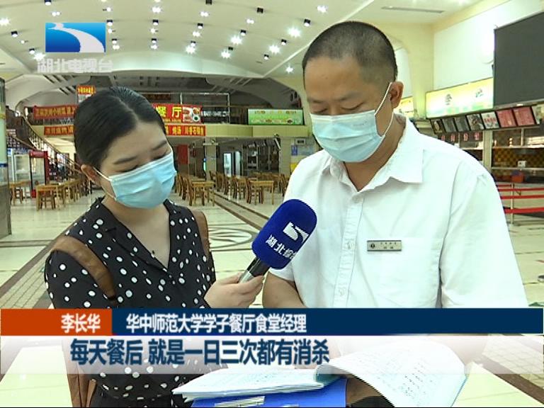 华中师范大学学子餐厅食堂经理 李长华:我们堂食的桌子都是同向摆放的,同向而坐不允许交流。每天餐后,就是一日三次都有消杀,消杀后还有详细的记录。