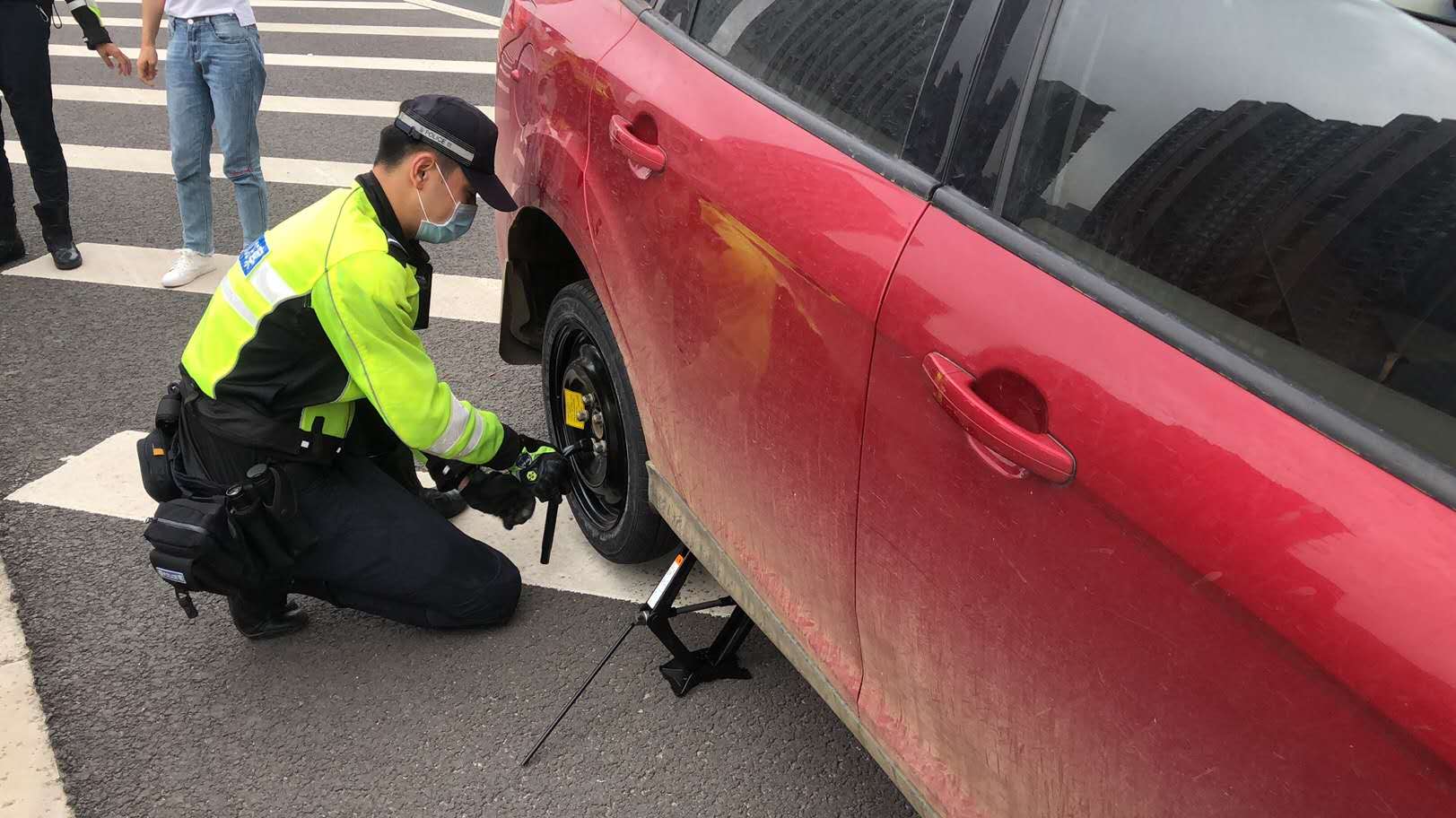 上班途中车爆胎急坏女司机,交警10分钟解决问题