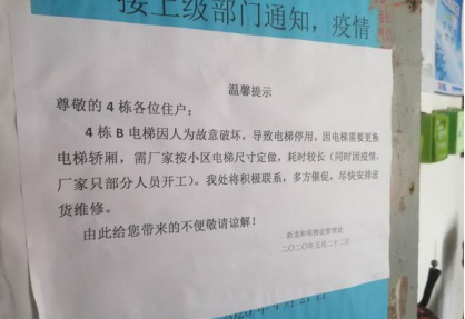 居民:电梯坏了四个多月,无人维修 物业:六月中旬前修好
