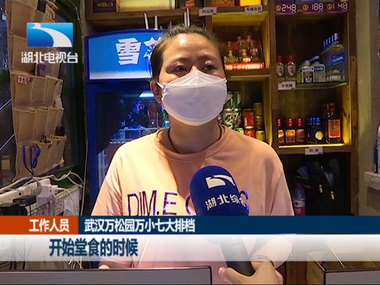 武汉万松园万小七大排档 工作人员:开始堂食的时候,每天进来也就三四十人,但是现在每天应该有个两百人左右。现在已经恢复到去年的时间是一样的,都一样营业到凌晨2点。