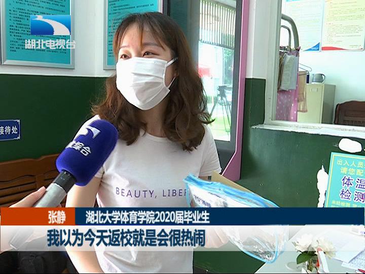 湖北大学体育学院2020届毕业生 张静:这个我在我们的微信公众号上面,看了阿姨给我们准备的家书,就有点想哭啊。我以为今天返校就是会很热闹,结果没有想到进来都没有人,好不想毕业啊。
