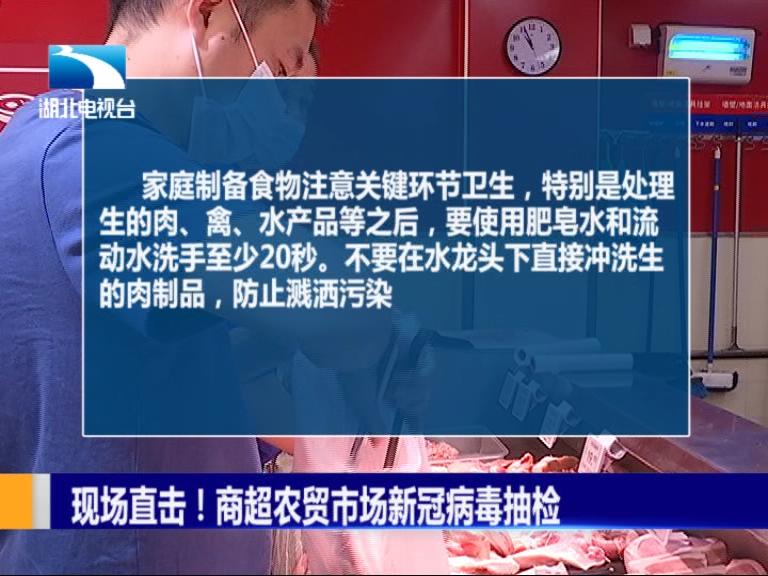 6月18号,国家卫健委发布了《低风险地区夏季重点地区重点单位场所新冠肺炎疫情常态化防控相关防护指南》,在人群篇关于食品消费者防护指南中提到,家庭制备食物注意关键环节卫生。特别是处理生的肉,禽,水产品等之后,要使用肥皂水和流动水洗手至少20秒。不要在水龙头下直接冲洗生的肉制品,防止溅洒污染。(字幕版)。而为了从源头上保障武汉市民家庭餐桌上的安全。疾控中心工作人员从13号开始每天定点对两个商超,两个农贸市场重点区域进行采样抽检。