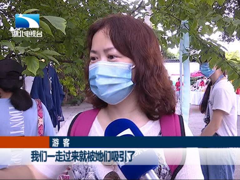 帮女郎:武汉黄鹤楼,自古享有“天下江山第一楼”的美誉,也一直被称作“有仙气”的楼,我现在就来到了黄鹤楼的落梅轩,在我身后,有仙气的集市正热闹开张,一番古风古韵的雅集摊位,让人仿佛穿越回了古代。