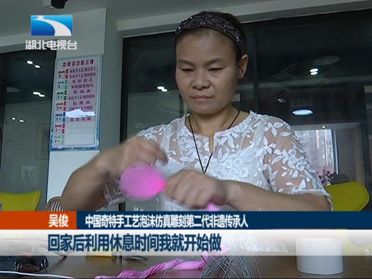中国奇特手工艺泡沫仿真雕刻第二代非遗传承人 吴俊:白天要值守,值守结束之后又在网上看任务。哪里搬运物资,哪里需要人,我就到哪里去。回家后利用休息时间我就开始做,第一个娃娃做了七个小时,后来两个半小时可以做五个。