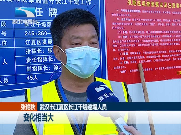 武汉市江夏区长江干堤巡堤人员 张艳秋:在这里生活了几十年,我对这个江堤有深厚的感情。这个江堤是建设得越来越好,制度化搞得相当好,我们更有信心把这个江堤守好。