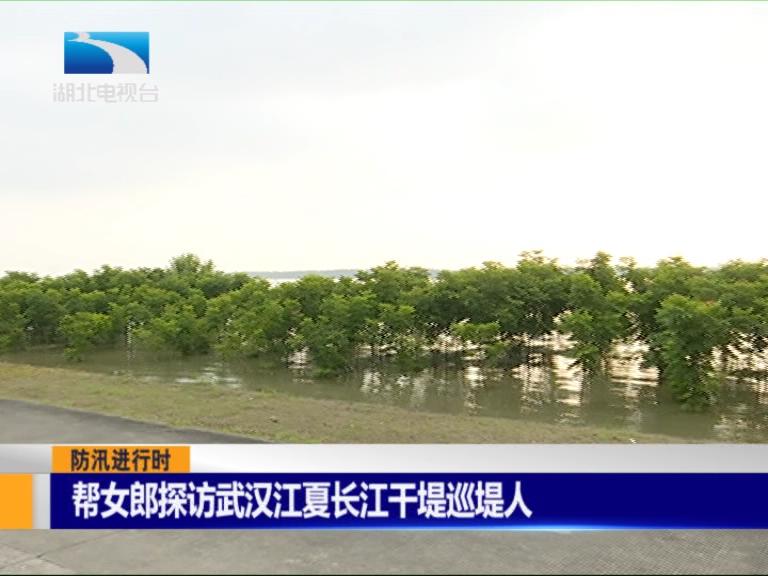 帮女郎:我现在是在武汉市江夏区长江干堤谭家窑险段附近,截至13号下午六点这里的水位已经达到29.37米,超警戒水位1.17米。大家可以看到我身后,这里原先是外滩跟护岸,现在是已经被完全淹没了。这个放浪林也是只能看到上半部分,树干也是被完全淹没了。