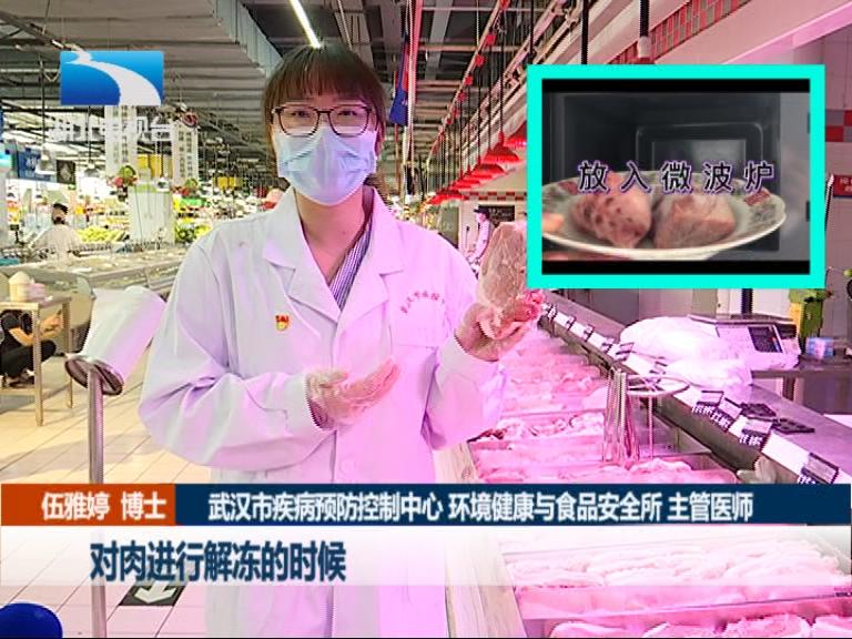 武汉市疾病预防控制中心 环境健康与食品安全所 主管医师 伍雅婷博士:我建议大家对肉进行解冻的时候,用微波炉进行解冻。因为微波炉的微波,可以对肉表面附着的细菌,有一定的杀灭作用。首先我不建议大家,将生鲜肉直接放在手龙头底下进行直冲。因为这样的话,会溅得到处都是。尤其可能溅到我们的脸上,那是极其不卫生的。那么,我们该怎么清洗?我们可以打一大盆的水,将这块肉放在水里面,进行仔细清洗。