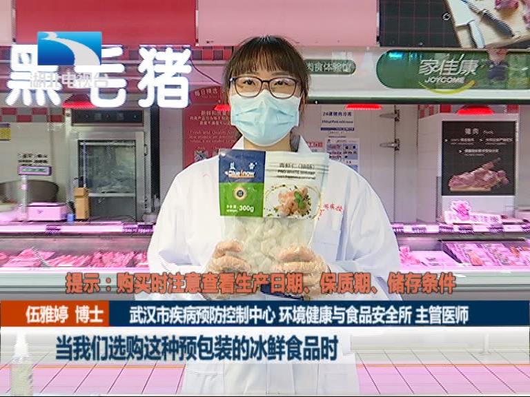 武汉市疾病预防控制中心 环境健康与食品安全所 主管医师 伍雅婷博士:当我们选购这种预包装的冰鲜食品时,要注意它的生产日期、保质期、以及储存条件。当指标合格的时候,将其买回家。在疫情期间,特别要注意对外包装进行一个消毒,可以使用75%的酒精进行一个喷洒消毒。