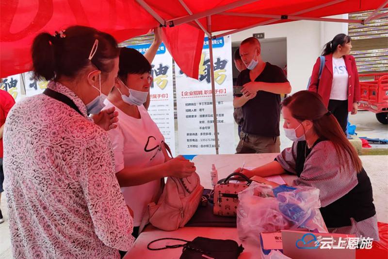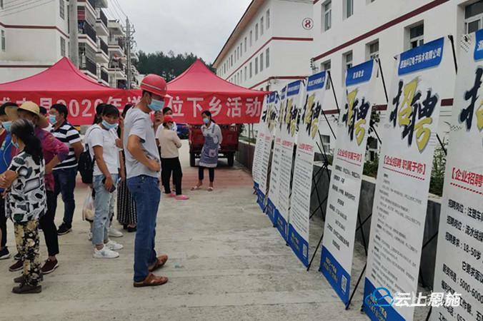 7月15日,咸丰县活龙坪乡联合县人社局在该乡气窝坝安置点举办就业扶贫“送岗位下乡”专场招聘会,让易迁户、贫困户与扶贫车间直接对接,一招解决企业招工难、群众就业难的问题。