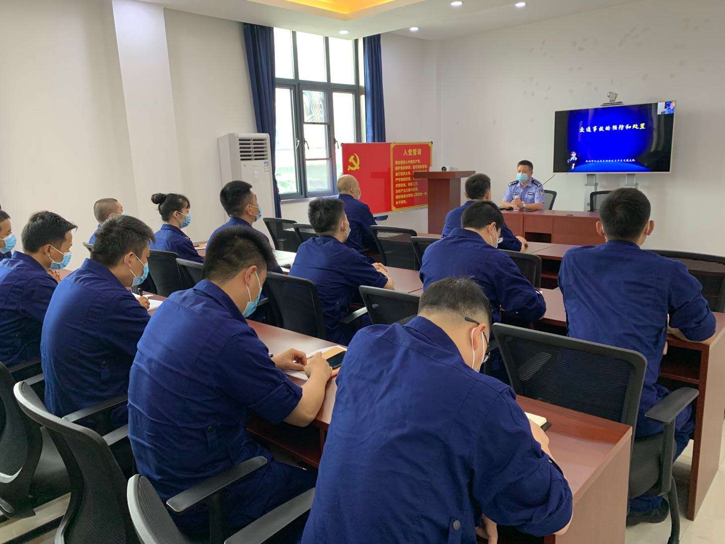 课堂上,车管民警结合典型交通事故案例进行了分析讲解,剖析了事故原因及后果,并深入解读了《中华人民共和国道路交通安全法》中涉及到消防车(特种车辆)的法律法规,特别强调了消防官兵驾驶车辆时应该遵守的具体规定。随后,民警又通过播放发生在辖区内真 实的交通事故案例视频,与消防官兵一起剖析了造成这些交通事故的主要原因,分析了交通事故的危害性和违法行车的严重后果。最后,民警紧密结合消防特种车辆工作实际和工作特点,向大家讲述了特种车辆执行任务时“警灯警笛的规范使用、车辆行驶过程中如何安全超车”以及其他相关注意事项,使官兵们深刻领悟到了加强交通安全法律、法规常识学习的必要性。