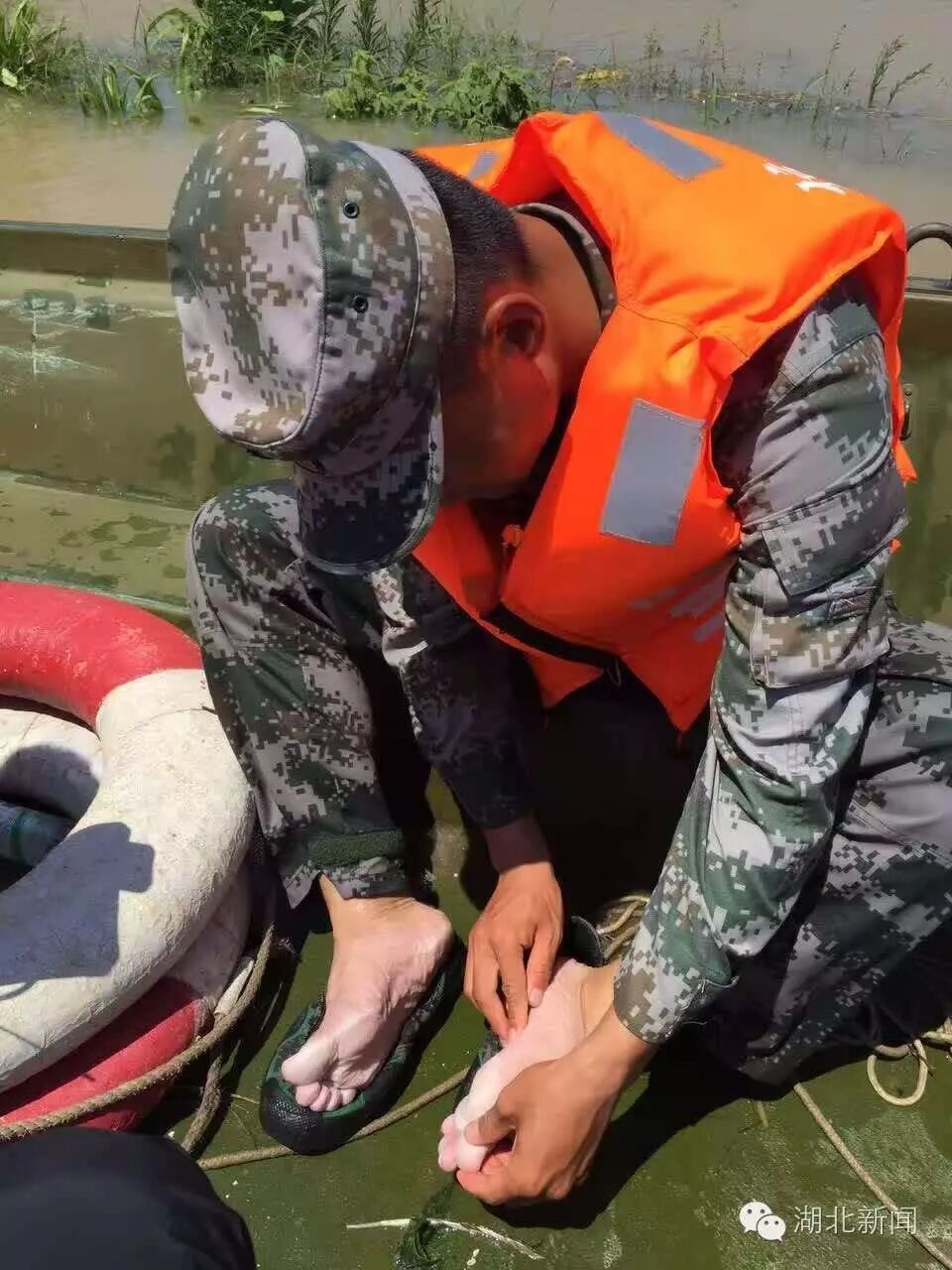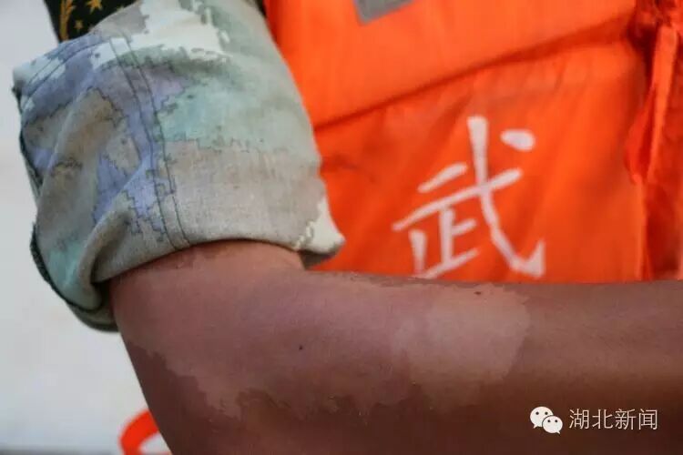 湖北“出梅”已五天,全省迎接高温“烤验”,但防汛抗灾仍在持续,抗洪战士们也依然在坚守。他们的额头满是汗水、脚掌泡到发白、手上满是伤口、手臂和背晒到脱皮……